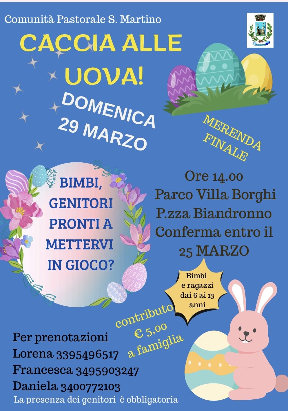 Domenica 29 marzo 2026 dalle ore 14.00 presso Villa Borghi di Biandronno. Divertimento assicurato per grandi e piccini in occasione della Caccia alle uova edizione 2026